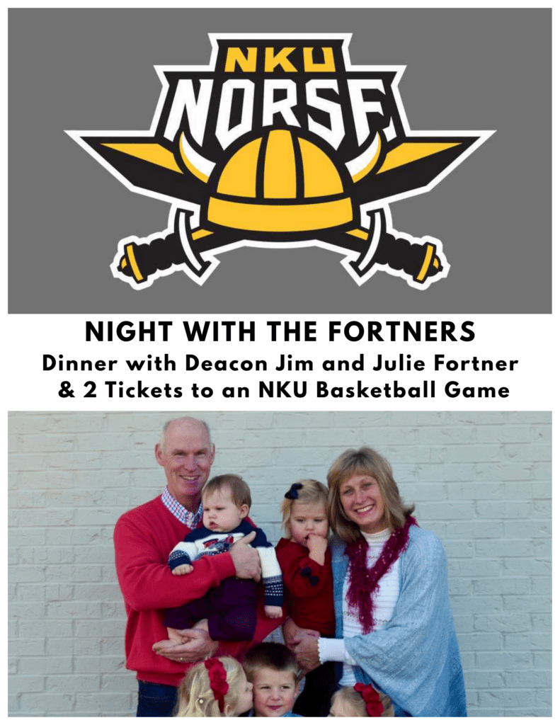 2 Tickets to an NKU Basketball Game and a complimentary dinner with Deacon Jim and Julie Fortner.