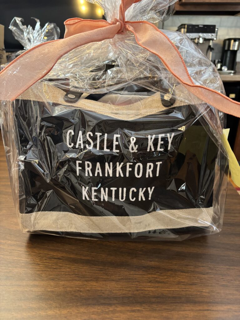 Castle & Key Frankfort KY Bag, Angels Envy, Elk Creek Wine, Candle, Towels, Notebook