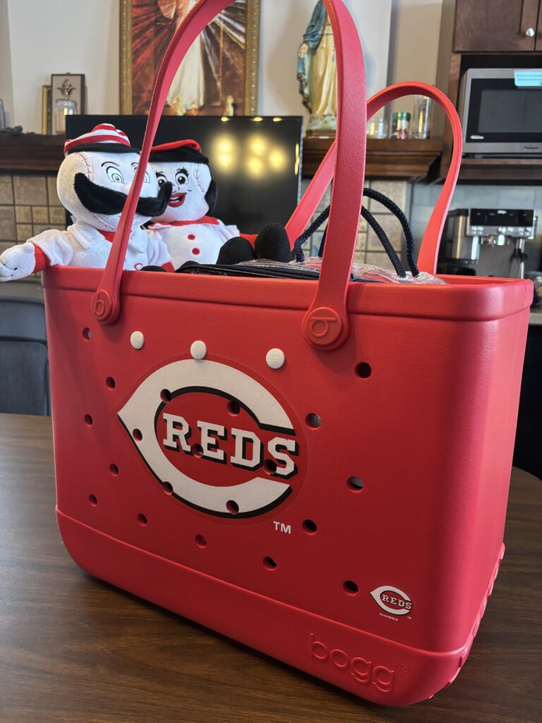 Original Bogg Bag Reds Edition, Royal Plush Raschel Blanket, Stainless Steel 40oz Tumbler, New Era Winter Cap, Glass Ornament, Stuffed Mr. Redlegs & Rosie Red