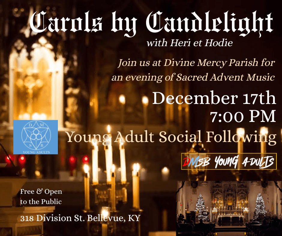 If you would like to support this ministry, please consider DONATING (enter amount of donation for “Young Adult Events”) or Volunteering by contacting Caitlin McGillivary at youngadults@dmsbcatholic.com