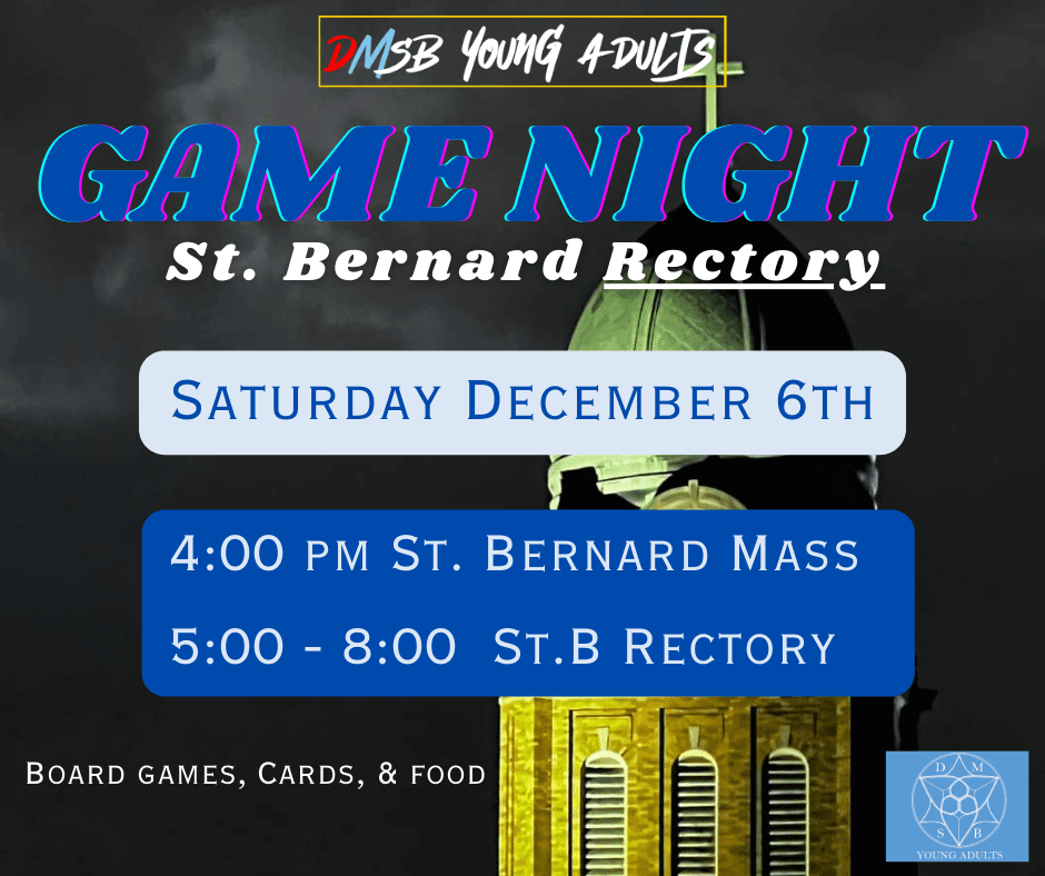 We are the young adults of Divine Mercy and Saint Bernard! Our mission is Christ’s mission, “to give eternal life to all whom thou hast given” (John 17:2). Our aim is to build community, grow in holiness, and live the gospel!
